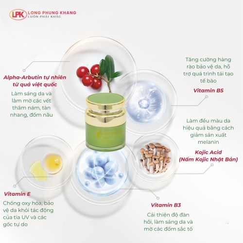 Công dụng: Giúp làm trắng da, giữ ẩm, chống nắng cho da