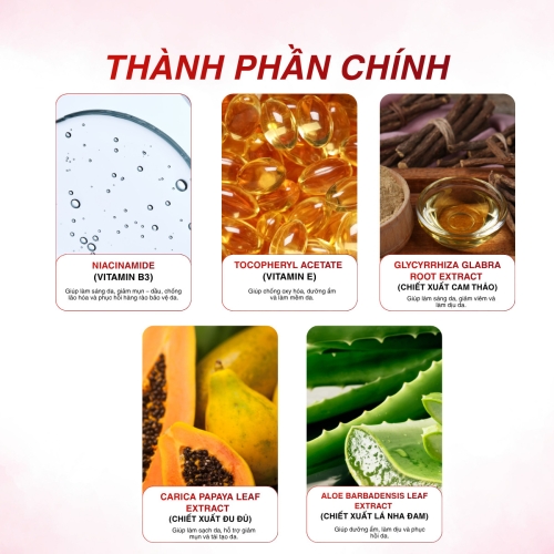 - Công dụng: Nâng tone da, dưỡng sáng da.