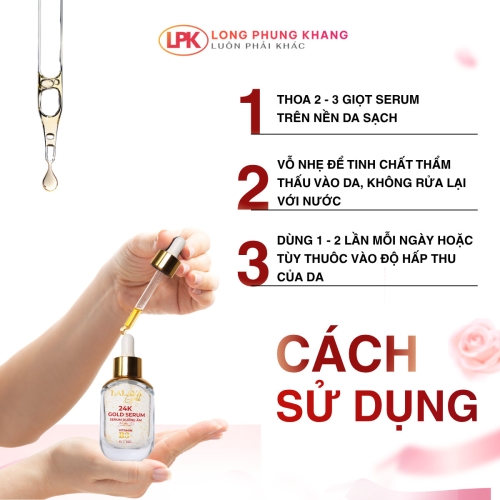 Serum cấp ẩm chuyên sâu với hạt vàng 24K giúp da luôn mềm mịn, tươi sáng và khỏe khoắn mỗi ngày.